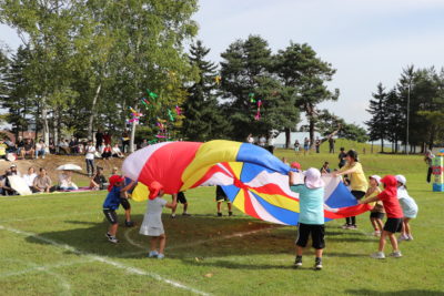 「せーの!」お友だちと息を合わせて大きなバルーンになりました!