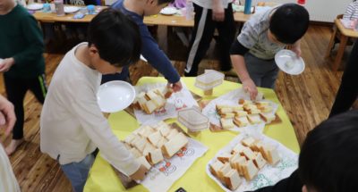 ぱんだ組さんの作ったサンドイッチ、いただきます!